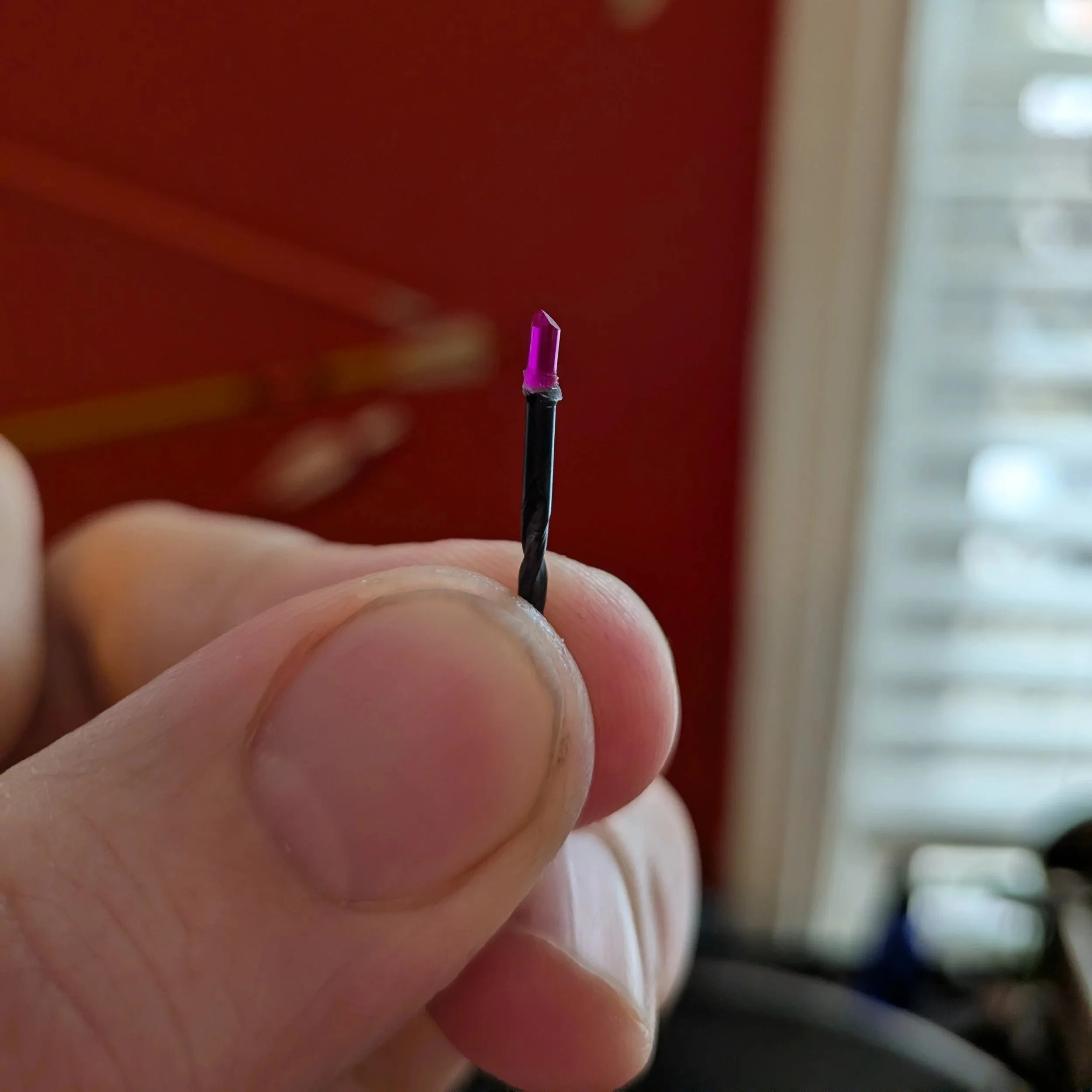 Joe calls this stylus “The Dark Wizard” because it reminds him of a wizard’s staff. This is ruby mounted on black powder high speed steel.